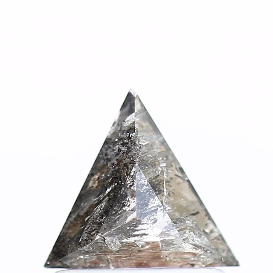 0.39 carat 5.75 mm natural fancy gray triangle salt and pepper diamond. With its striking triangular shape and distinctive coloration, this diamond is an ideal choice for those seeking to make a bold statement. Add a touch of natural sophistication to your jewelry collection with this one-of-a-kind diamond.