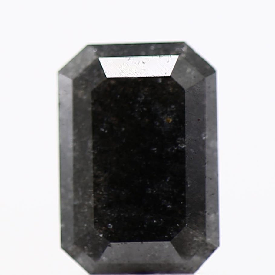 0.98 Carat 7.10 MM Fancy Black Emerald Cut Salt and Pepper Diamond