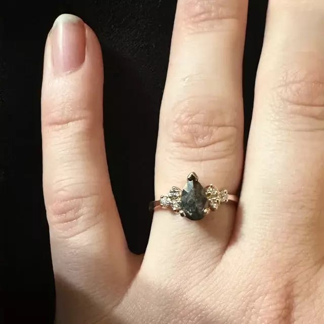 1.27 Carat 9.47 X 6.48 X 2.33 MM Natural Loose Diamond Pear Rose Cut Fancy Gray Salt and Pepper Engagement Ring